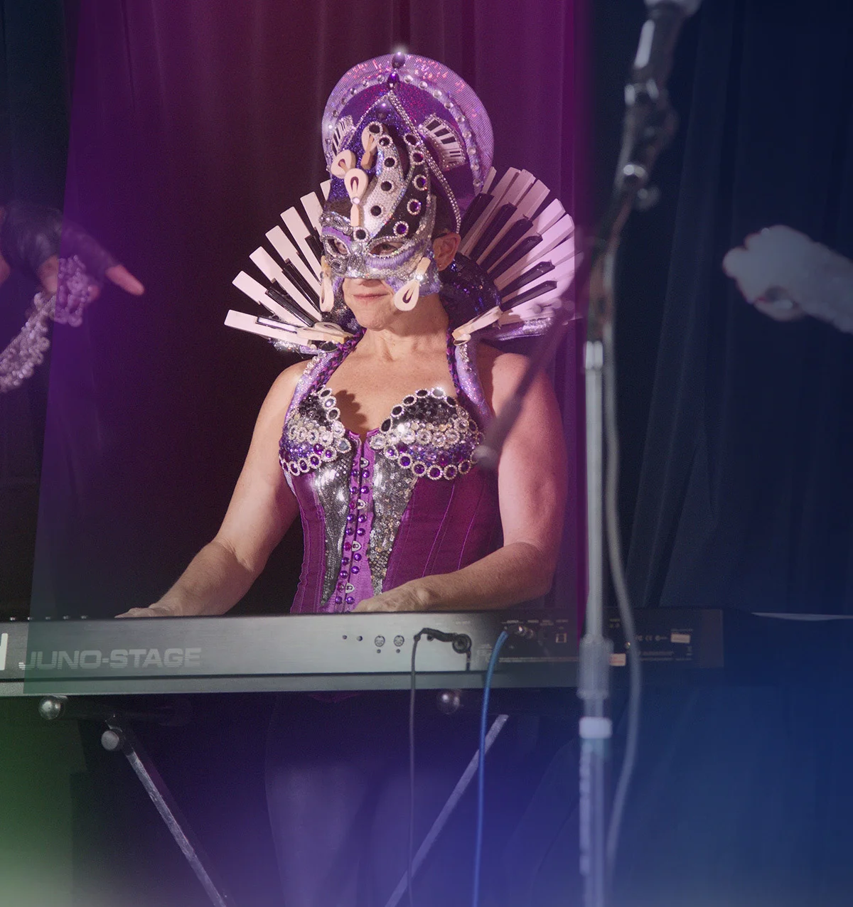 OCTAVIA CORDESS CHROMATICA a.k.a CORDESSA (Amy Levine) lights up the stage with synthesizers and funky soundwaves as the U.F.O. takes flight